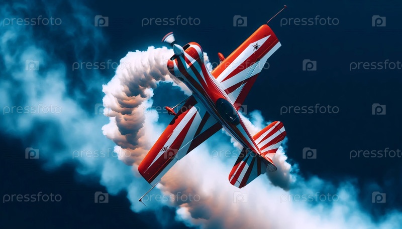 Биплан, выполняющий аэробные упражнения на авиашоу, Ai generated image
