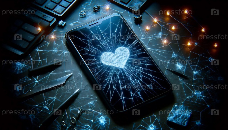 Разбитый экран смартфона, Ai generated image