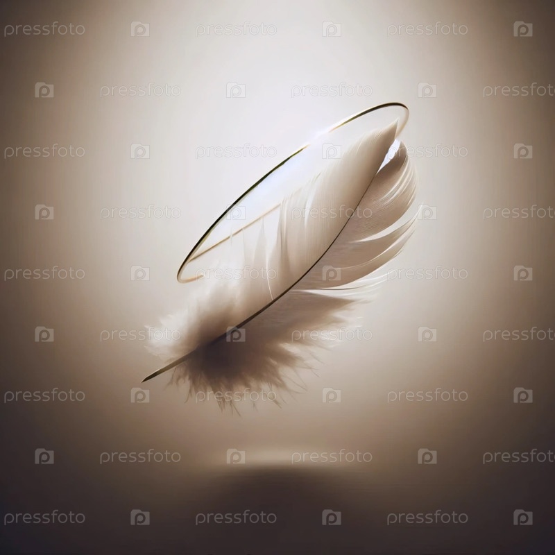 Одно плавающее перо с золотым кольцевым ореолом, Ai generated image