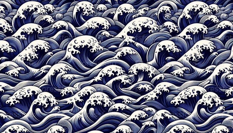 Японский дизайн обоев с повторяющимися узорами, Ai generated image