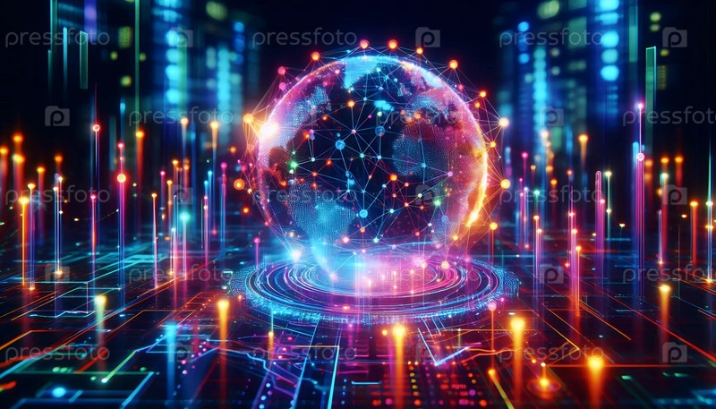 Футуристическая графика с неоновыми цветами, Ai generated image