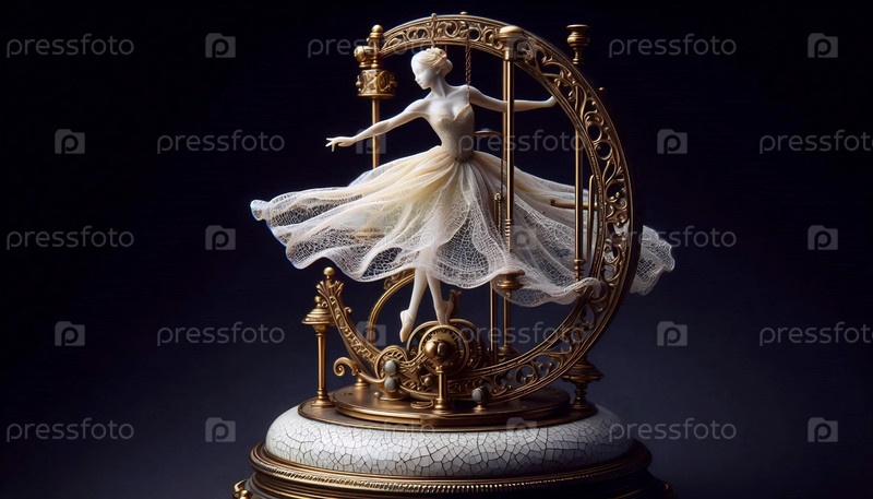 Балерина как фарфоровая кукла в музыкальной коробке, Ai generated image