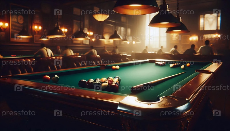 Винтажный бильярдный стол в задымленном зале, Ai generated image