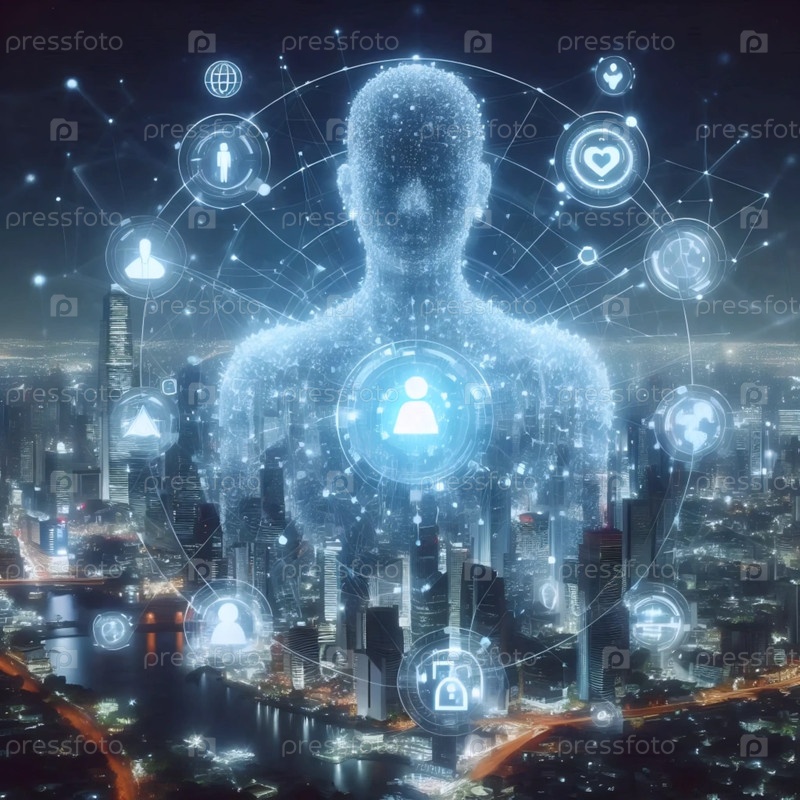 Цифровой ангел, состоящий из светящихся смайликов и сигналов wifi, Ai создал изображение