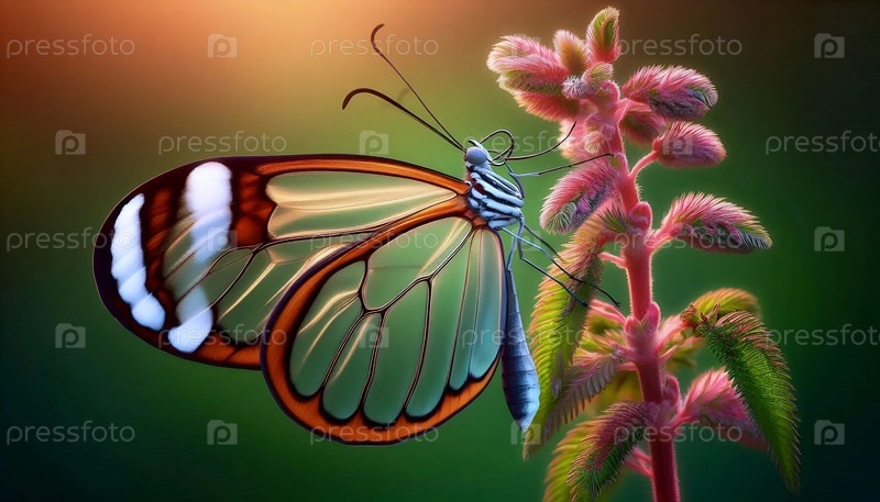 Стеклянная бабочка в дикой природе, Ai generated image