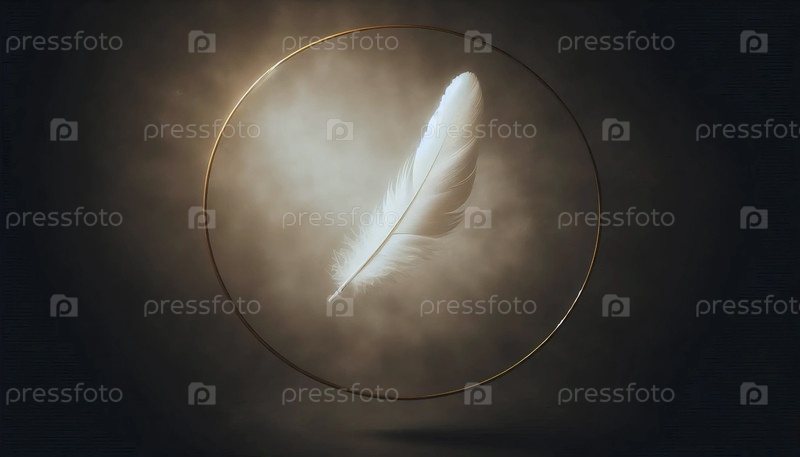 Одно плавающее перо с золотым кольцевым ореолом, Ai generated image