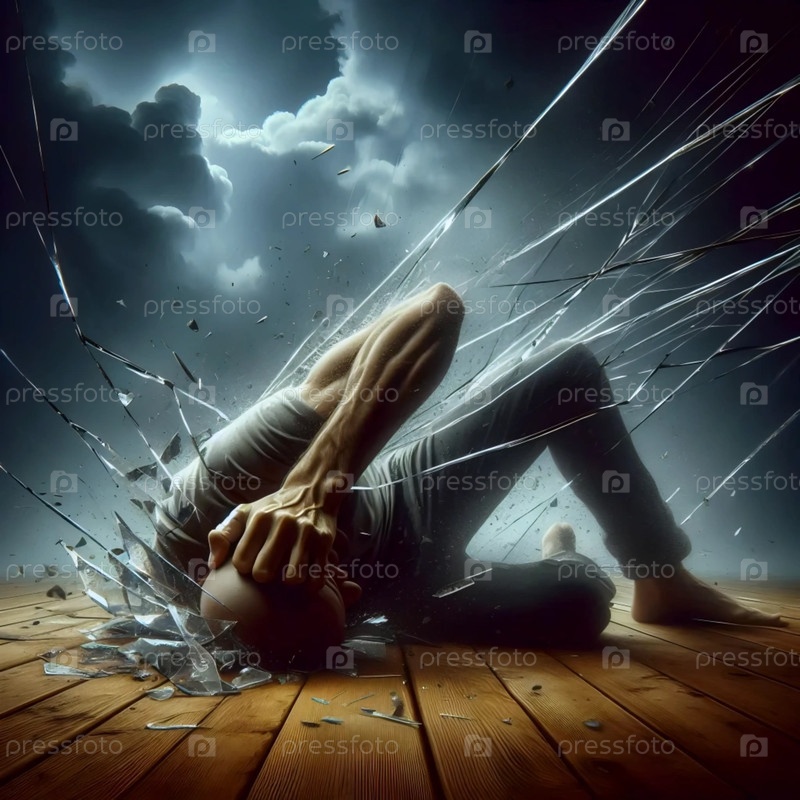 Разбитое стекло на деревянном полу, Ай создал изображение