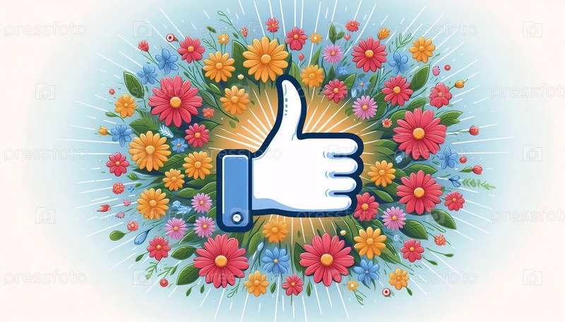 Кнопка "Лайк" в центре пышной венки смешанных цветов, Ай создал изображение