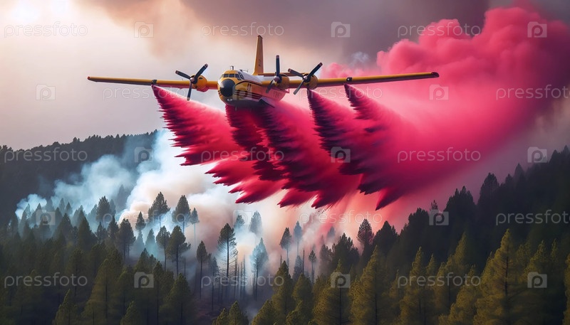 Самолет пожарной службы сбрасывает отстойник над лесом, Ai generated image