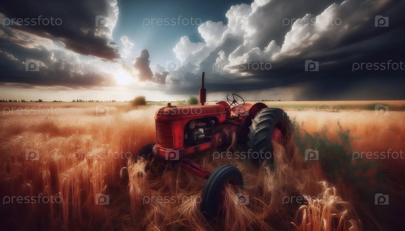 Винтажный трактор в поле, Ai generated image