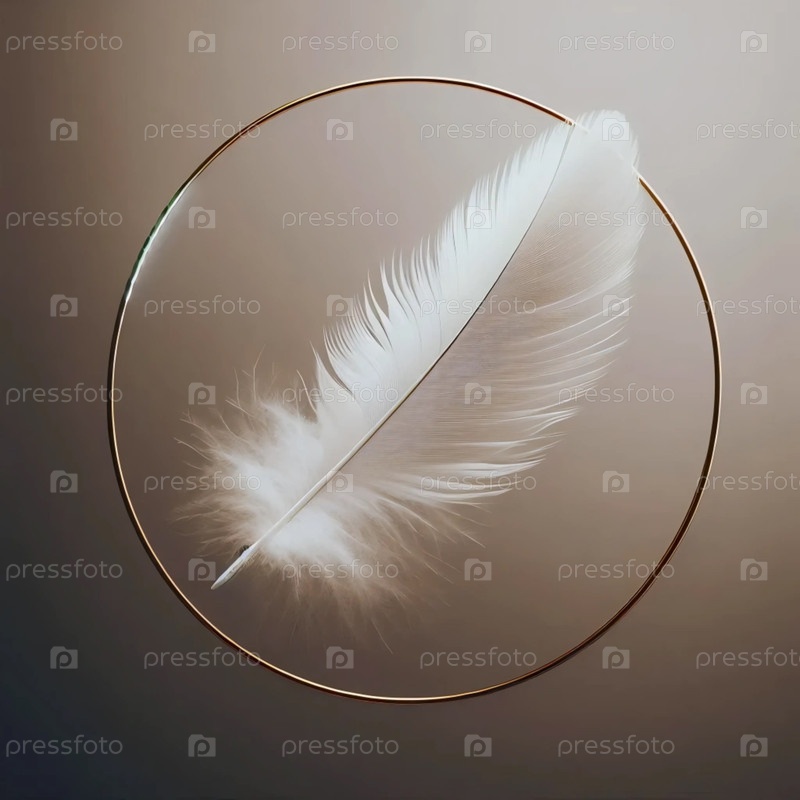 Одно плавающее перо с золотым кольцевым ореолом, Ai generated image