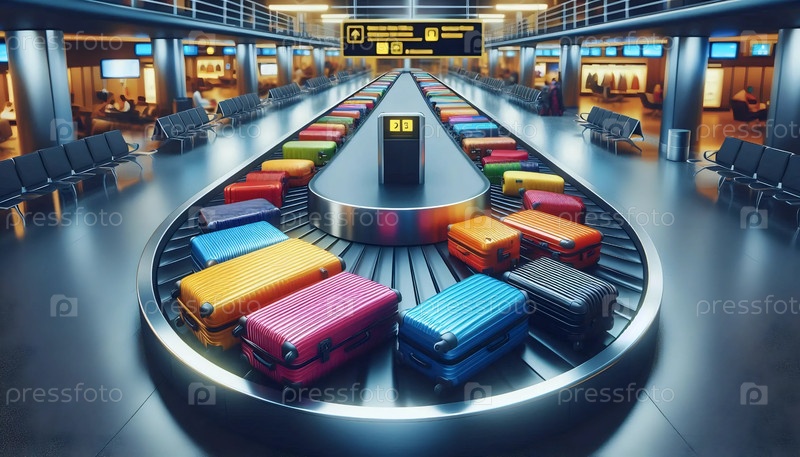 Багажный карусель в аэропорту с чемоданами, Ai A generated image