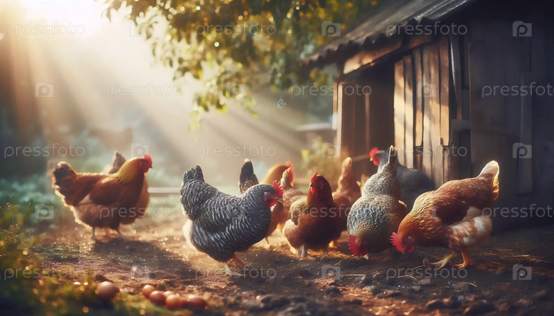 Куры на свободном поле, Ai generated image