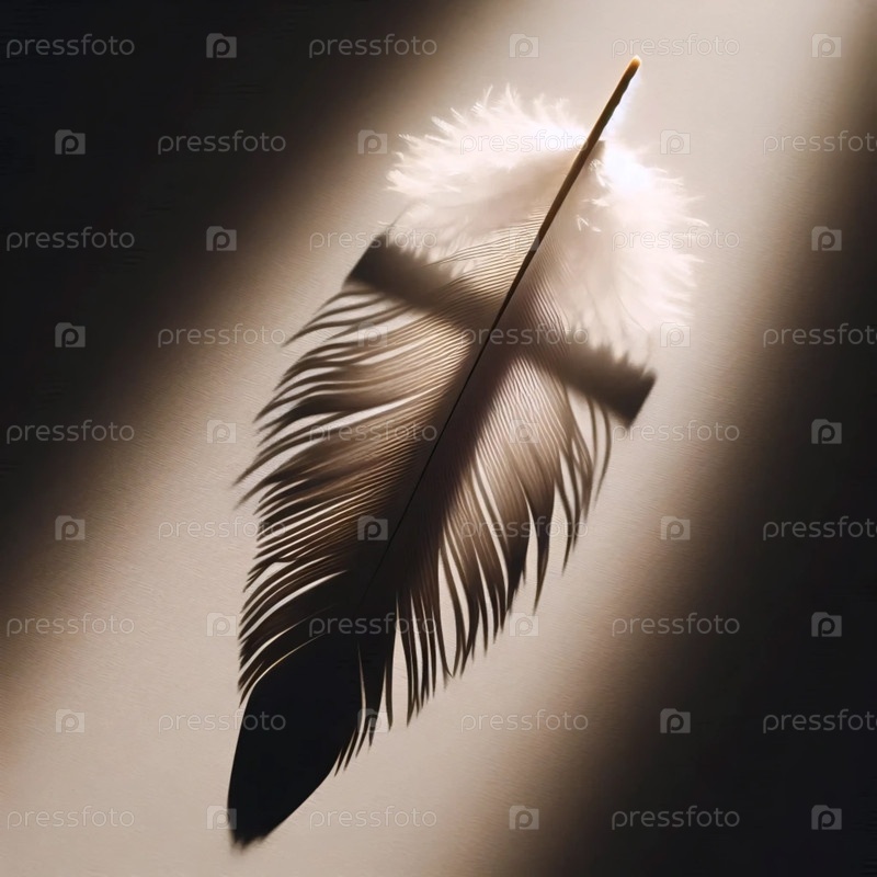 Одно плавающее перо, бросающее тень-крест на белую стену, Ai generated image