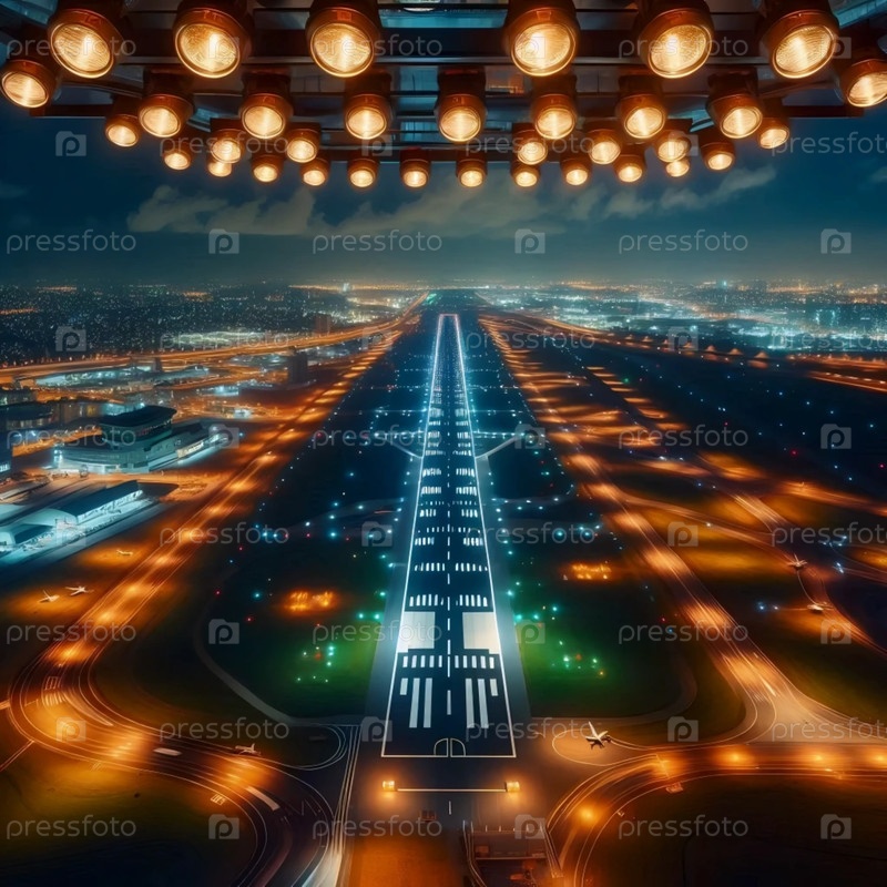 Вид с вышки управления воздушным движением ночью, Ai создал изображение
