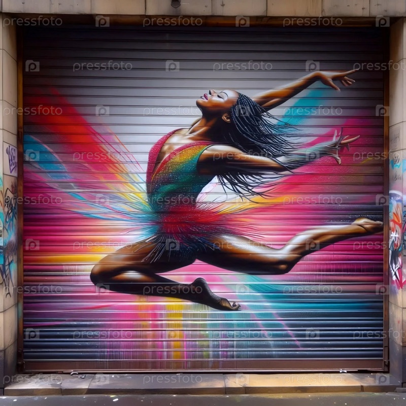 Граффити балерины на стене в промышленном районе, Ai generated image
