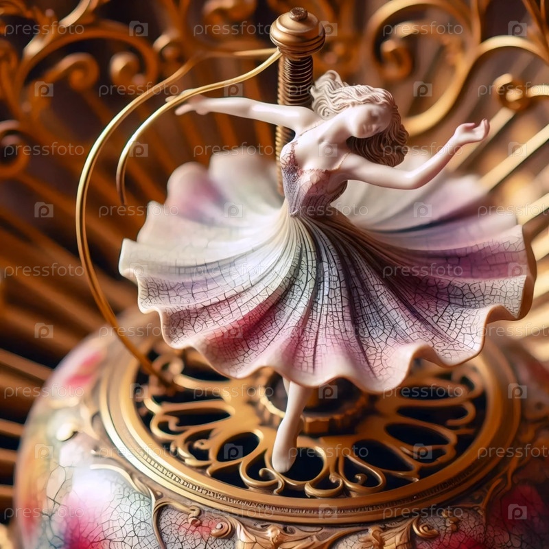 Балерина как фарфоровая кукла в музыкальной коробке, Ai generated image
