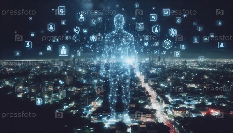 Цифровой ангел, состоящий из светящихся смайликов и сигналов wifi, Ai создал изображение