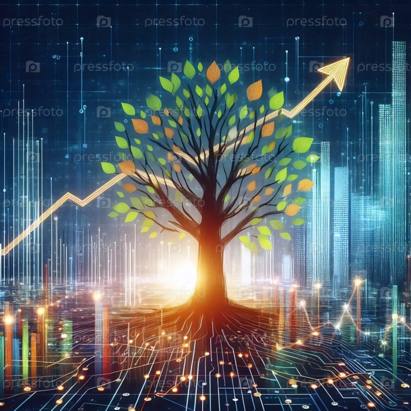 Инфографика города и деревянного роста, изображение, созданное искусственным интеллектом