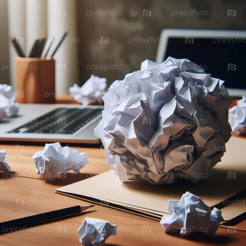 Крупный бумажный шар на столе, Ai generated image