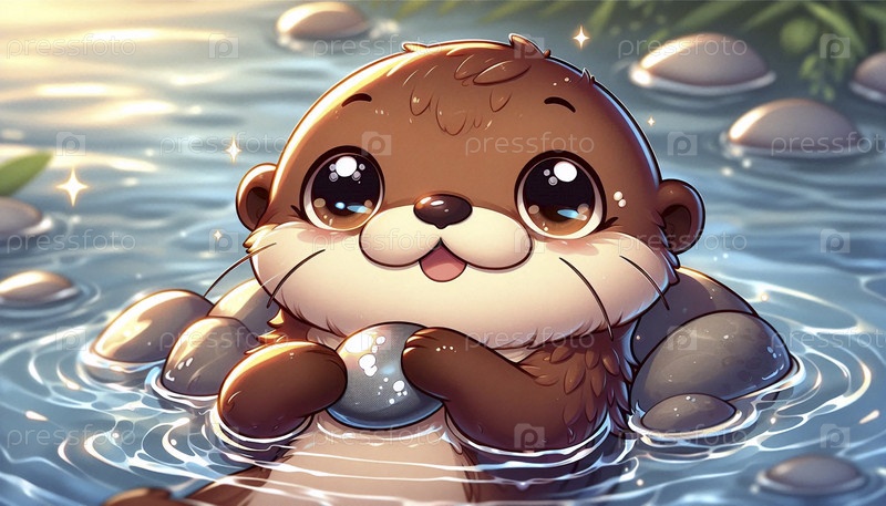 Подробная иллюстрация кавайской выдра с галочкой, Ai generated image