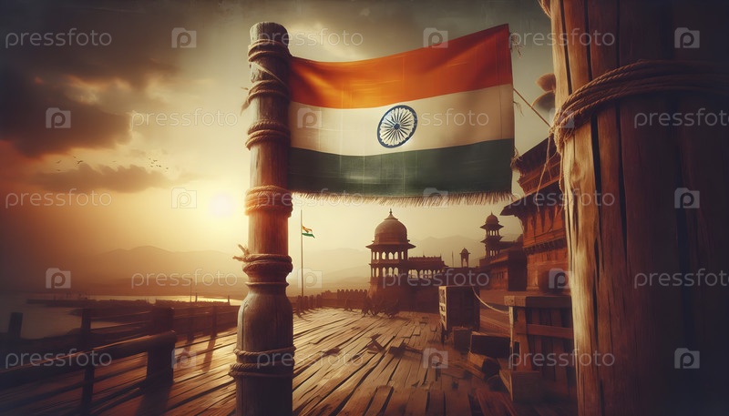 Индийский флаг, реалистичный эффект движения, Ai created image