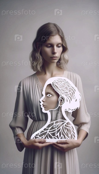 Женщина, держащая свой бумажный силуэт, Ai generated image