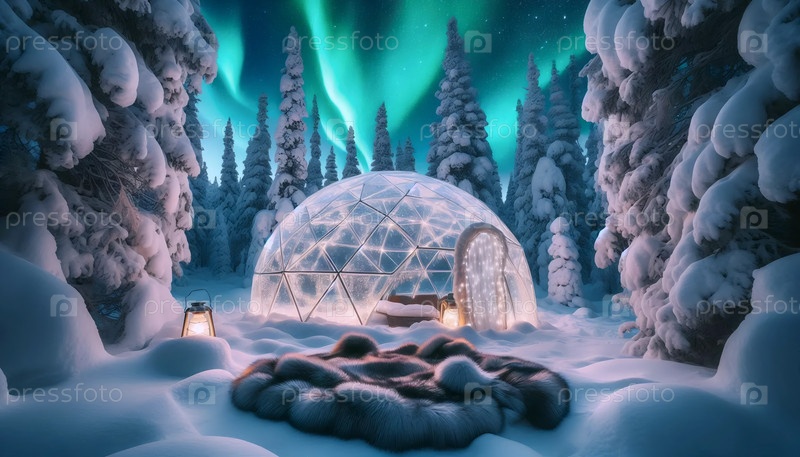 Заснеженный сосновый лес со стеклянной иглой, Ai generated image