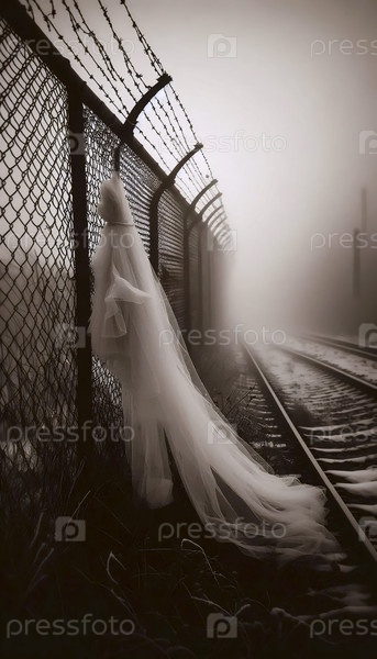 Свадебный платок, застрявший на заборе с цепными звеньями, Ai generated image