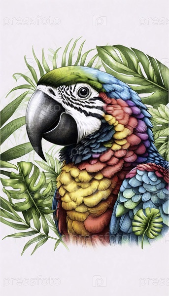 Цветный чернил попугай, рисующий художественную печать, Ai generated image