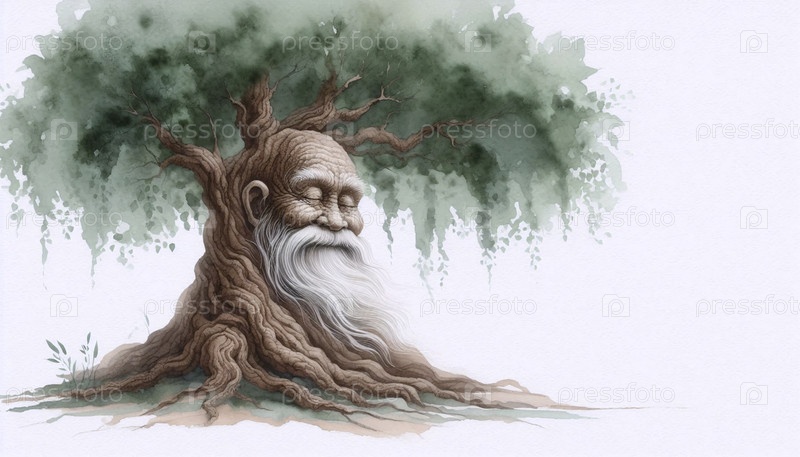 Gentle Tree акварельный художественный печат, Ai generated image A
