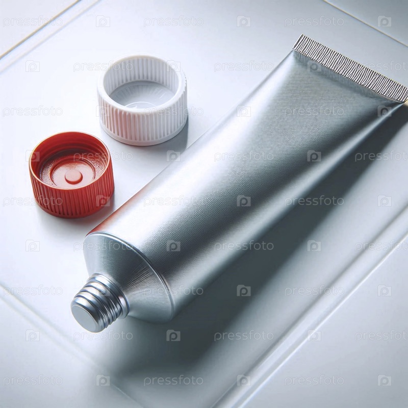 Пустой, ламинированный макет трубы зубной пасты с наклонным крышкой, Ai generated image