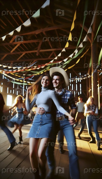 Пара танцует в сарае, Ai generated image