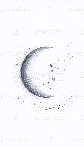 Полумесяц Луна и звезды чернила рисование художественная печать, Ai generated image