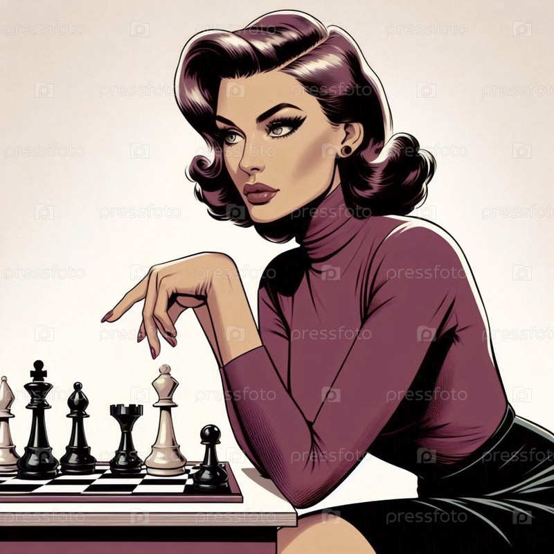 Пин-ап девушка как шахматист, делающая стратегический ход, Ai generated image