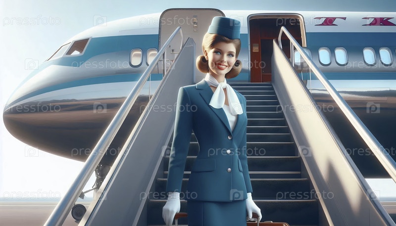 Стюардесса 1960-х годов на ступеньках самолета, Ай создала образ