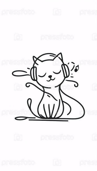Минималистское линейное искусство кошки с наушниками, Ai generated image