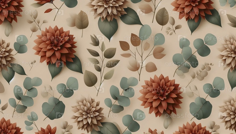 Терракотовая цветная осенняя цифровая бумага в зеленых и оранжевых цветах, Ai generated image