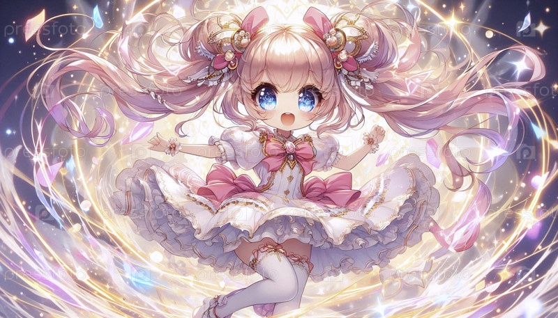 Подробная иллюстрация Чиби о волшебной трансформации девушки, Ai generated image
