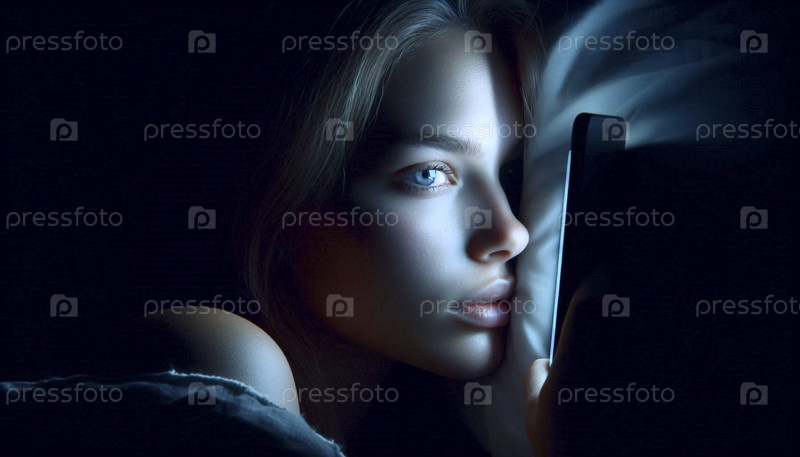 Лицо, полуосвещенное светом смартфона, Ай создал изображение