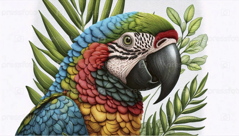 Цветный чернил попугай, рисующий художественную печать, Ai generated image