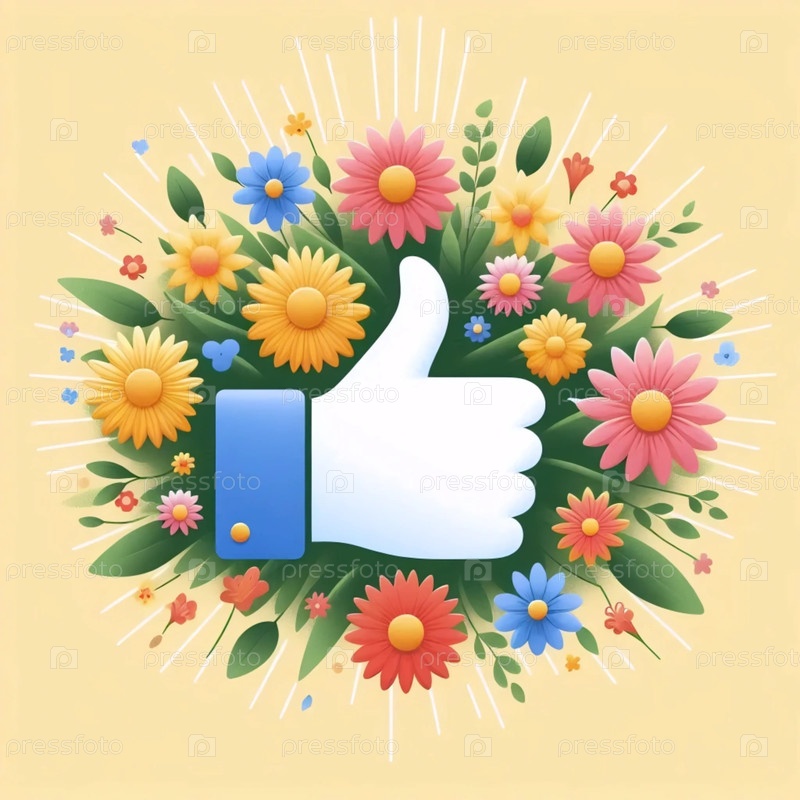 Кнопка "Лайк" в центре пышной венки смешанных цветов, Ай создал изображение