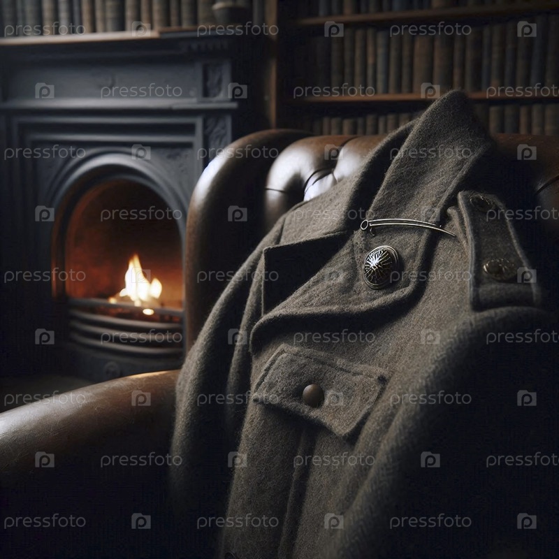 Пустой, классический макет задней кисти, прикрепленный к лапельке старого военного шерстяного куртки, Ай создал изображение