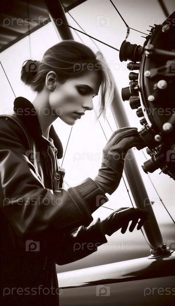 Профильный снимок пилота, проверяющего самолет, Ai создал изображение