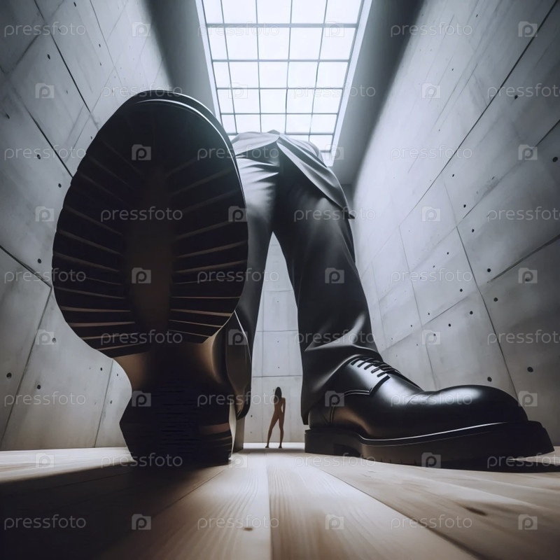 Драматический снимок низкого угла, придающий обуви монументальное присутствие, Ай создал изображение