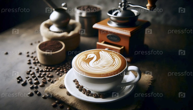 Специальный кофе латте со сложным искусством, Ai generated image