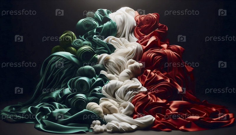 Итальянский флаг, сделанный из роскошных модных тканей, Ai generated image