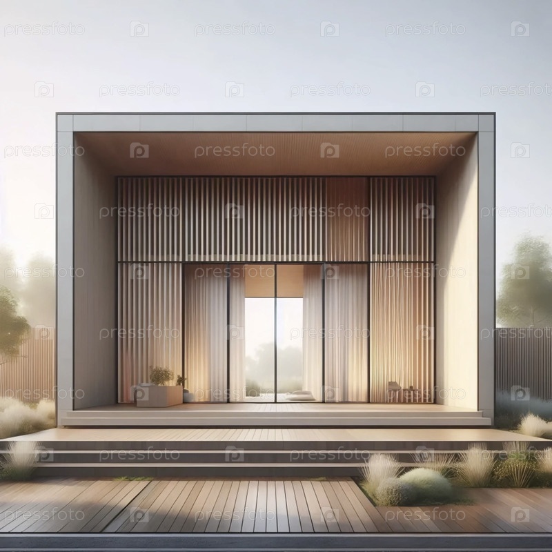 Нейтральный фотоотпечаток современного дома середины века, Ai generated image