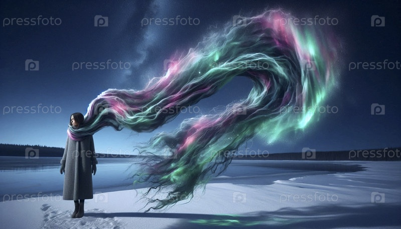 Шаль, превращающаяся в акварельное полярное сияние, Ai generated image