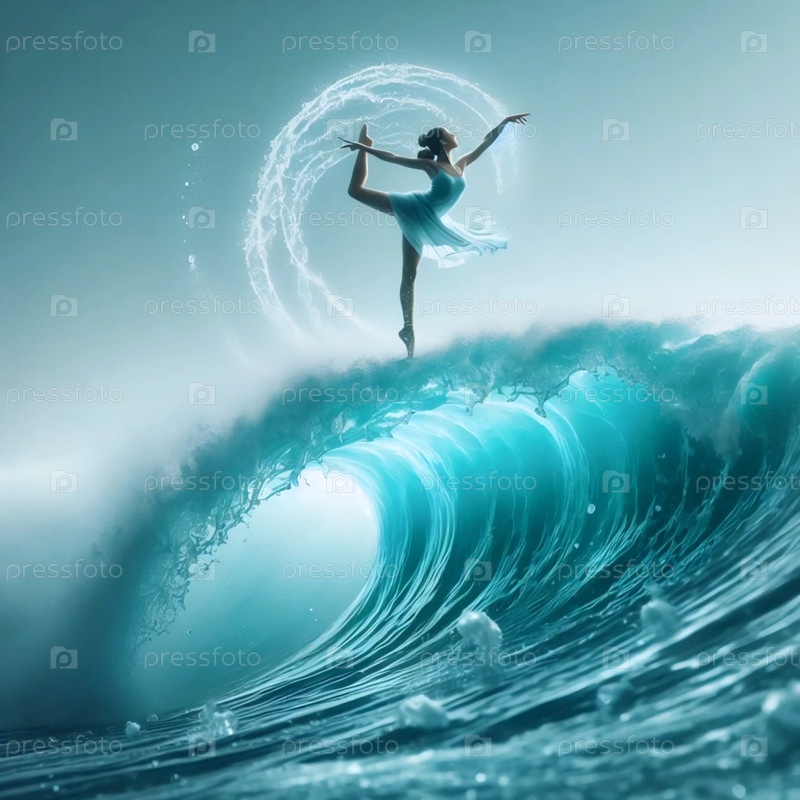Балерина в точке на вершине разбивающейся океанской волны, Ai generated image